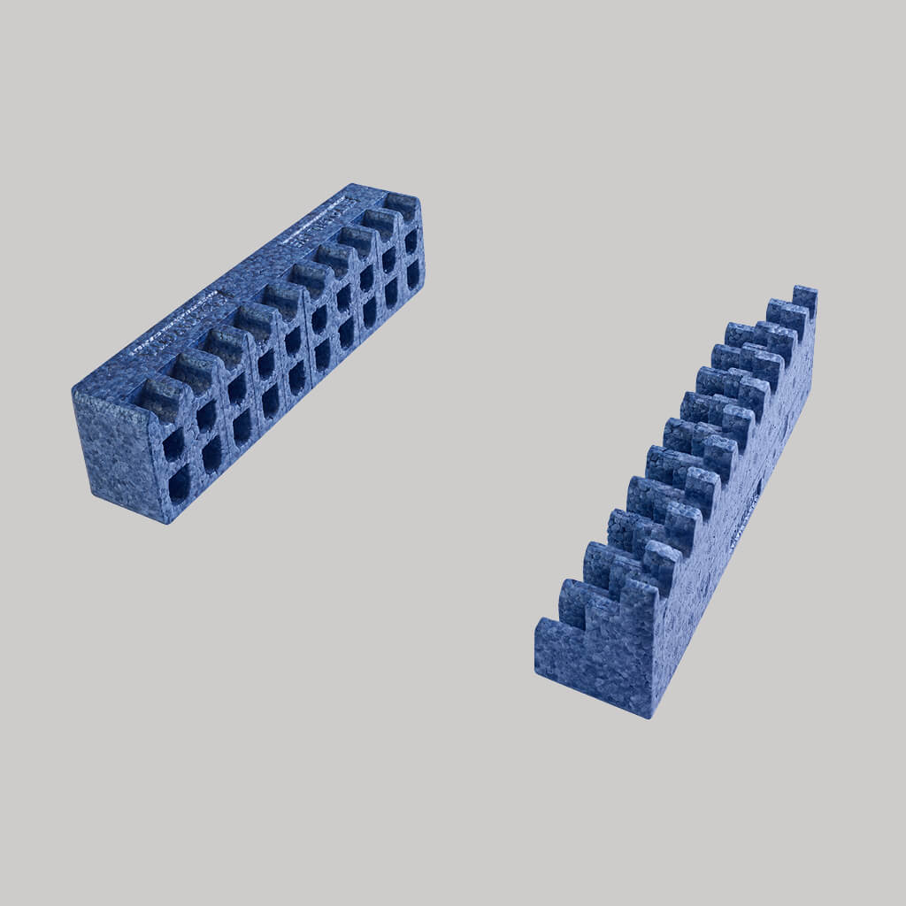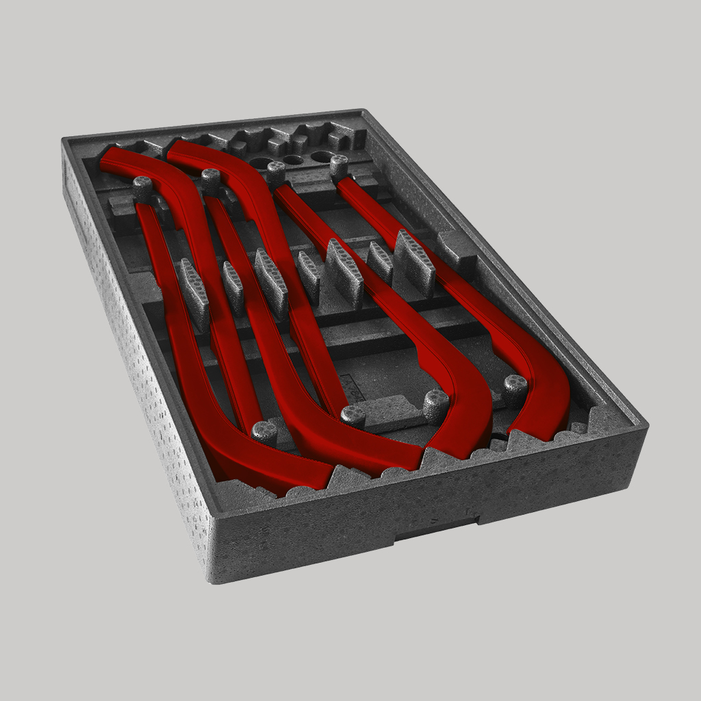 Our EPP molded parts are also excellently suited for transporting heavy loads. They withstand shocks and pressure loads permanently, are stackable and palletizable, and usually last for the life of a car. This way, you keep your logistics costs under control.